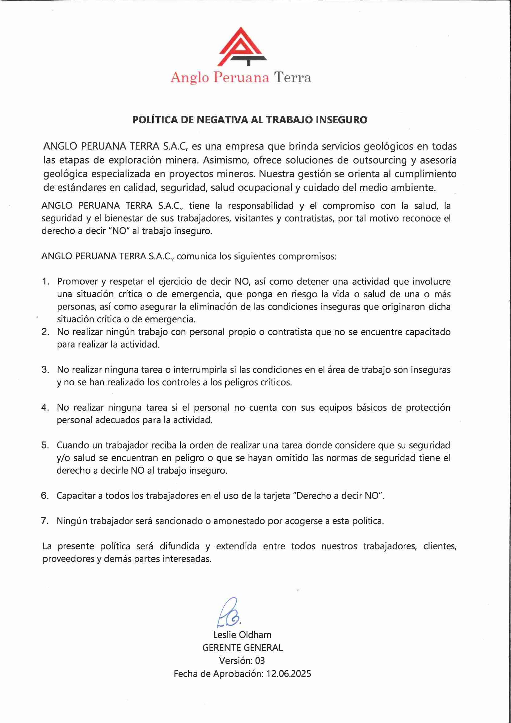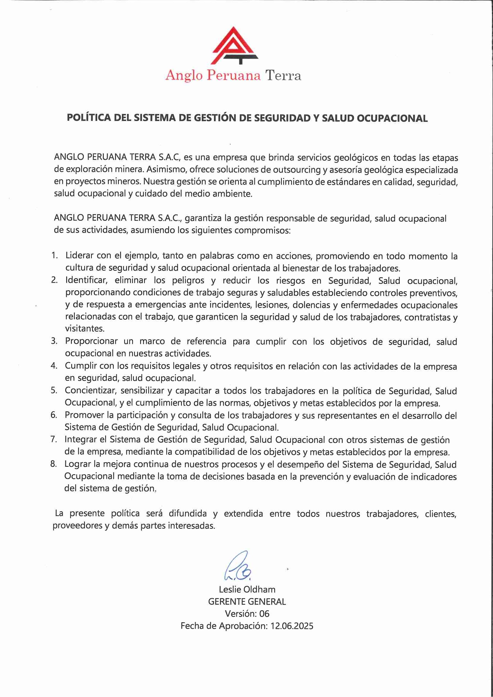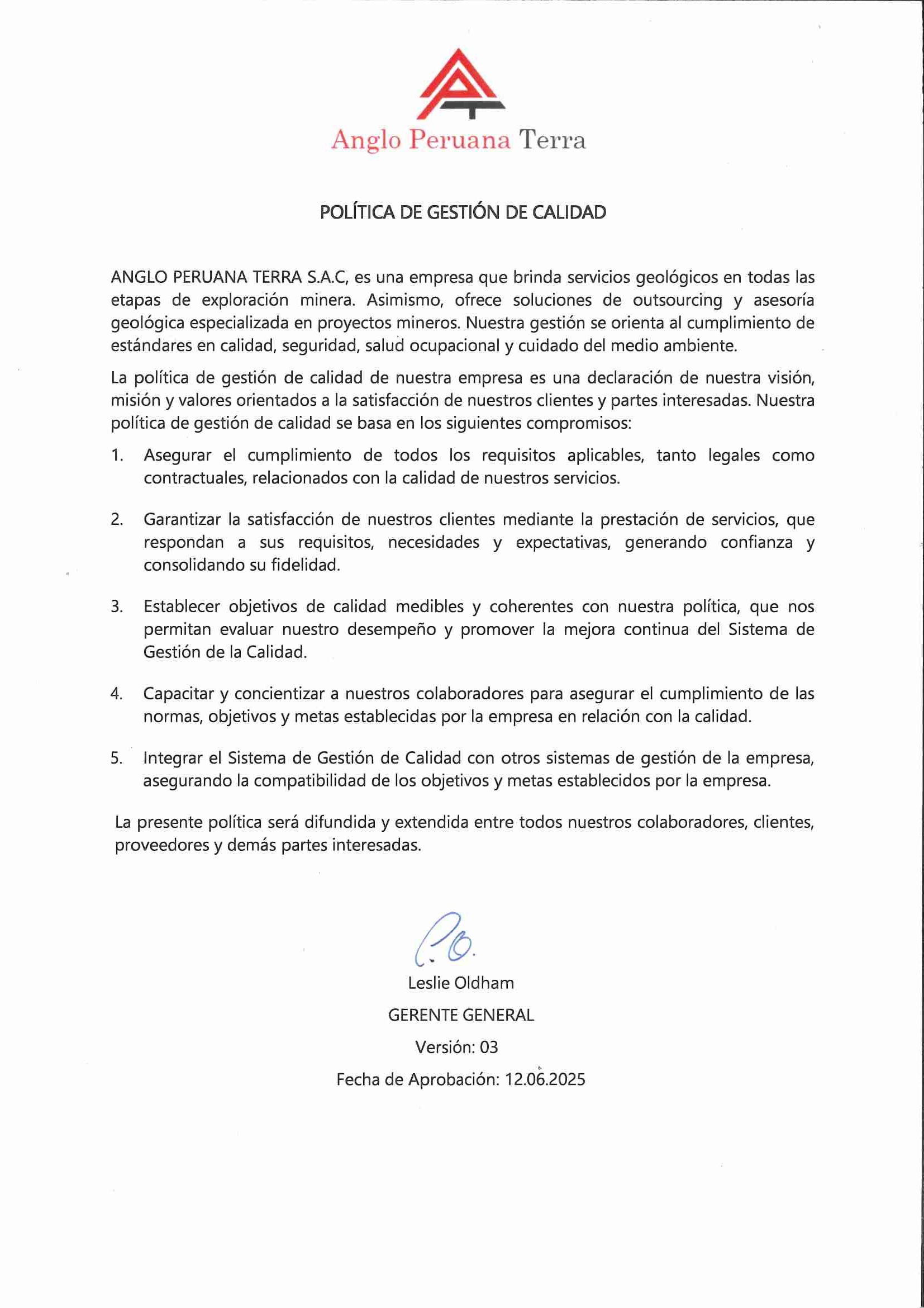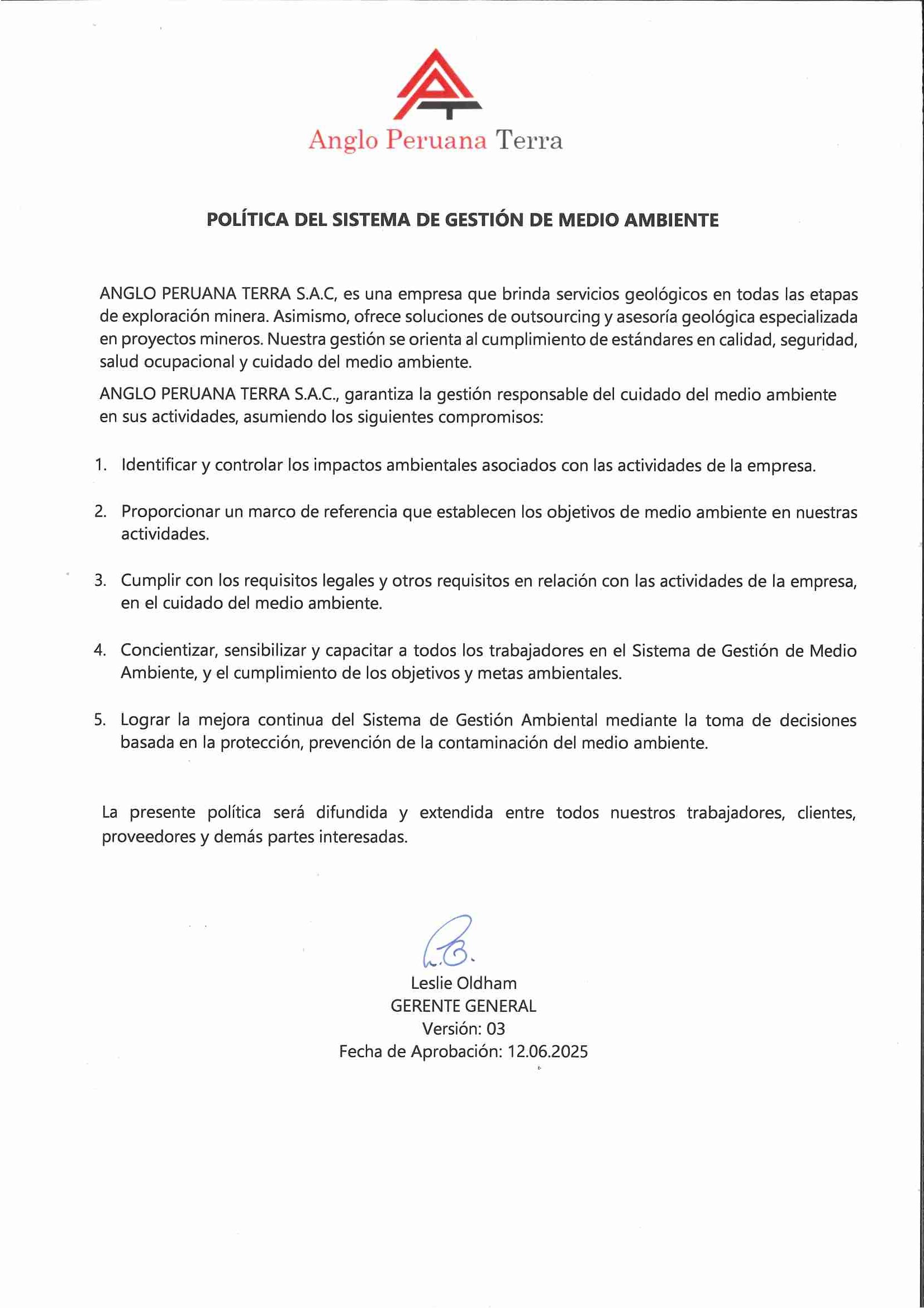 Actualmente, Anglo Peruana Terra S.A.C. cuenta con un amplia experiencia administrando, apoyando y contribuyendo a las exploraciones en el Perú.