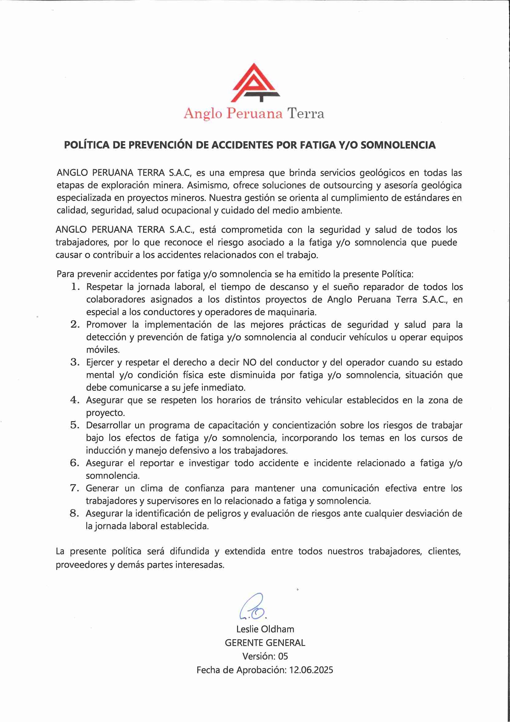 En el año 2009 cambio su razón social a Anglo Peruana Terra S.A. con el propósito de ampliar el alcance de sus actividades dentro y fuera del sector minero.